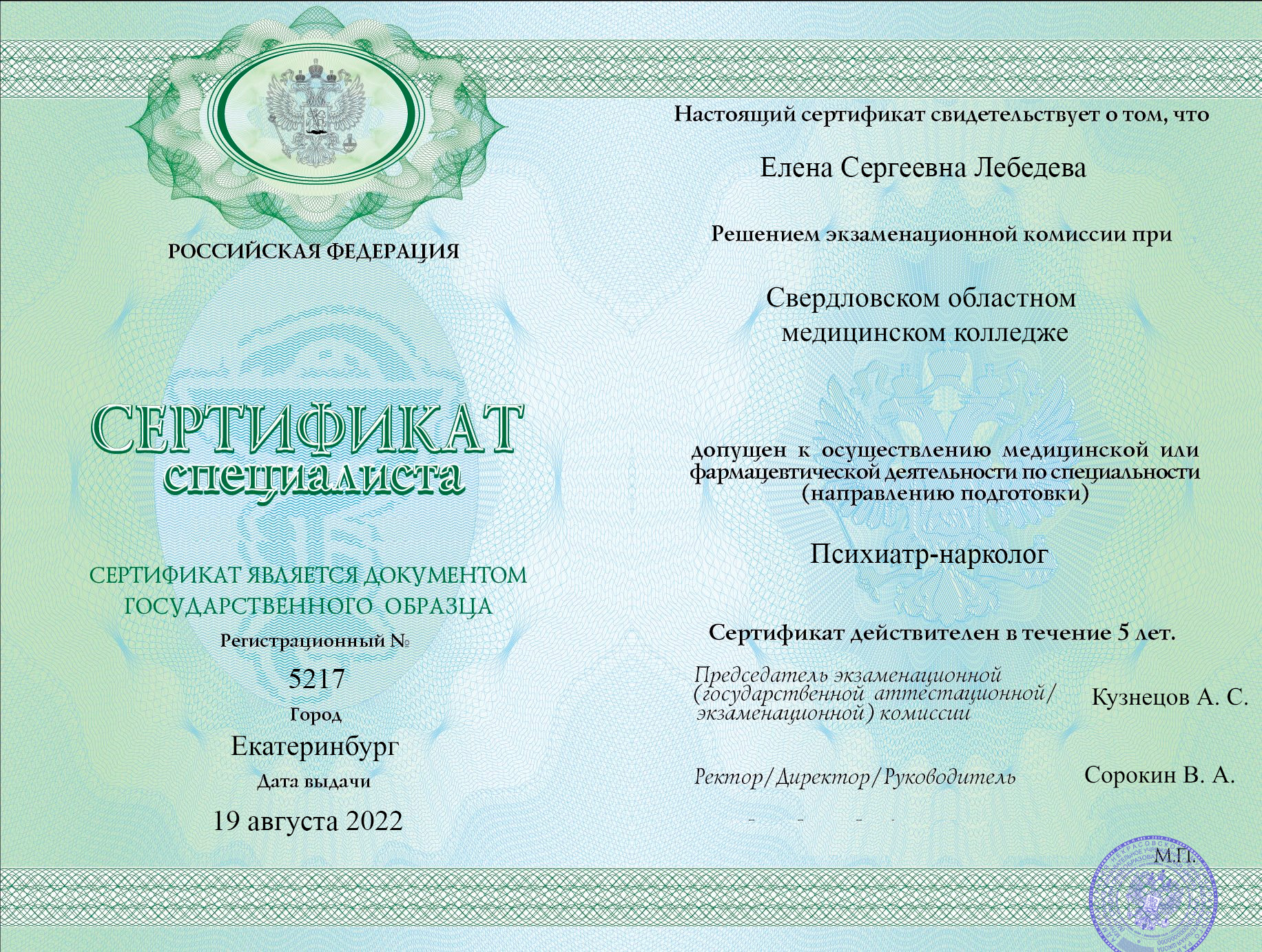 Елена Сергеевна Лебедева врач нарколог клиники доктора Стукаловой в Бугульме
